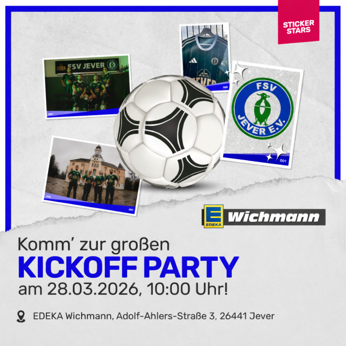Der FSV Jever freut sich, die Einführung seines neuen und einzigartigen Stickeralbums bekanntzugeben, das ab dem 28.03.2026 exklusiv im EDEKA Wichmann in der Adolf-Ahlers-Straße 3 erhältlich ist. Dieses innovative Projekt, das von dem Berliner Unternehmen "STICKERSTARS" realisiert wurde, bringt nicht nur Fans und Mitglieder näher zusammen, sondern stärkt auch die Gemeinschaft des Vereins.